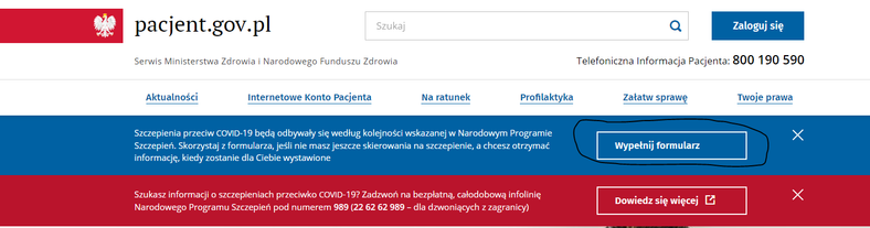 Przed szczepieniem otrzymasz kwestionariusz do wypełnienia. Znajdziesz tutaj najświeższe komunikaty i wskazówki, odpowiedzi na najczęściej zadawane pytania, a także założenia narodowego programu szczepień. Każdy, kto będzie chciał otrzymać szczepienie powinien wypełnić formularz zgłoszenia chęci szczepienia. Aby umówić się na szczepienie lub uzyskać więcej informacji, zadzwoń na bezpłatną infolinię: Dzisiejszego poranka serwis pacjent.gov.pl nie wytrzymał obciążenia i najwyraźniej doszło do awarii.