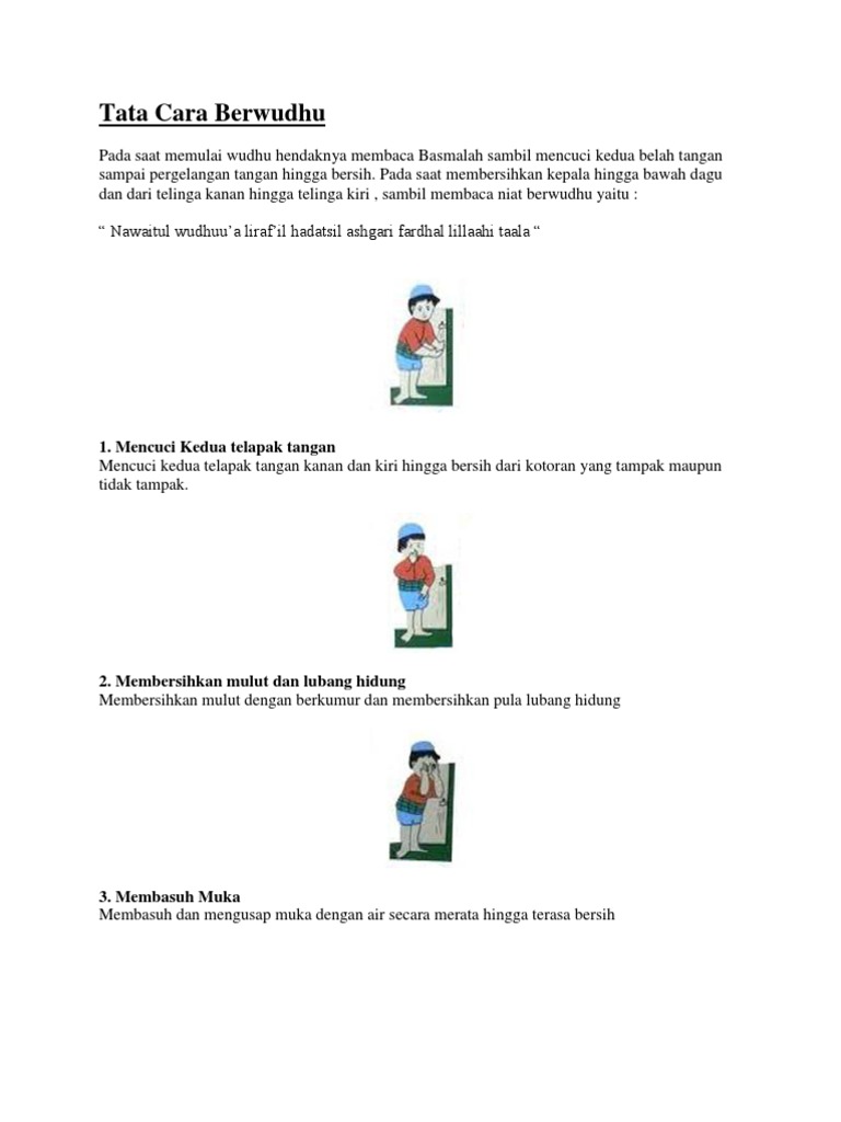 Jual Tata Cara Berwudhu Jakarta Barat Kingdom Kids Tokopedia from images.tokopedia.net Saudara saudariku yang mengharapkan kasih sayang dan ma'unah allah swt simaklah uraian duta dakwah cara berwudhu berikut ini: Cara berwudhu secara umum antara lain: Last updated on september 30, 2017 by tongkrongan islami. Cara wudhu atau tata cara wudhu yang benar? Niat letaknya dalam hati, adapun melafazhkan niat maka tidak. Setelah lama tidak menulis, kali ini dan seterusnya blog ini akan lebih dominan membahas mengenai artikel yang berhubungan dengan islam. .tata cara berwudhu lengkap dengan doanya ini bermanfaat bagi kita semua terlebih kami sebagai admin caranya.co ini sendiri, di sini kami hanya memberikan informasi mengenai cara sah berwudhu. Berikut ini adalah urutan wudu dilengkapi dengan doanya.